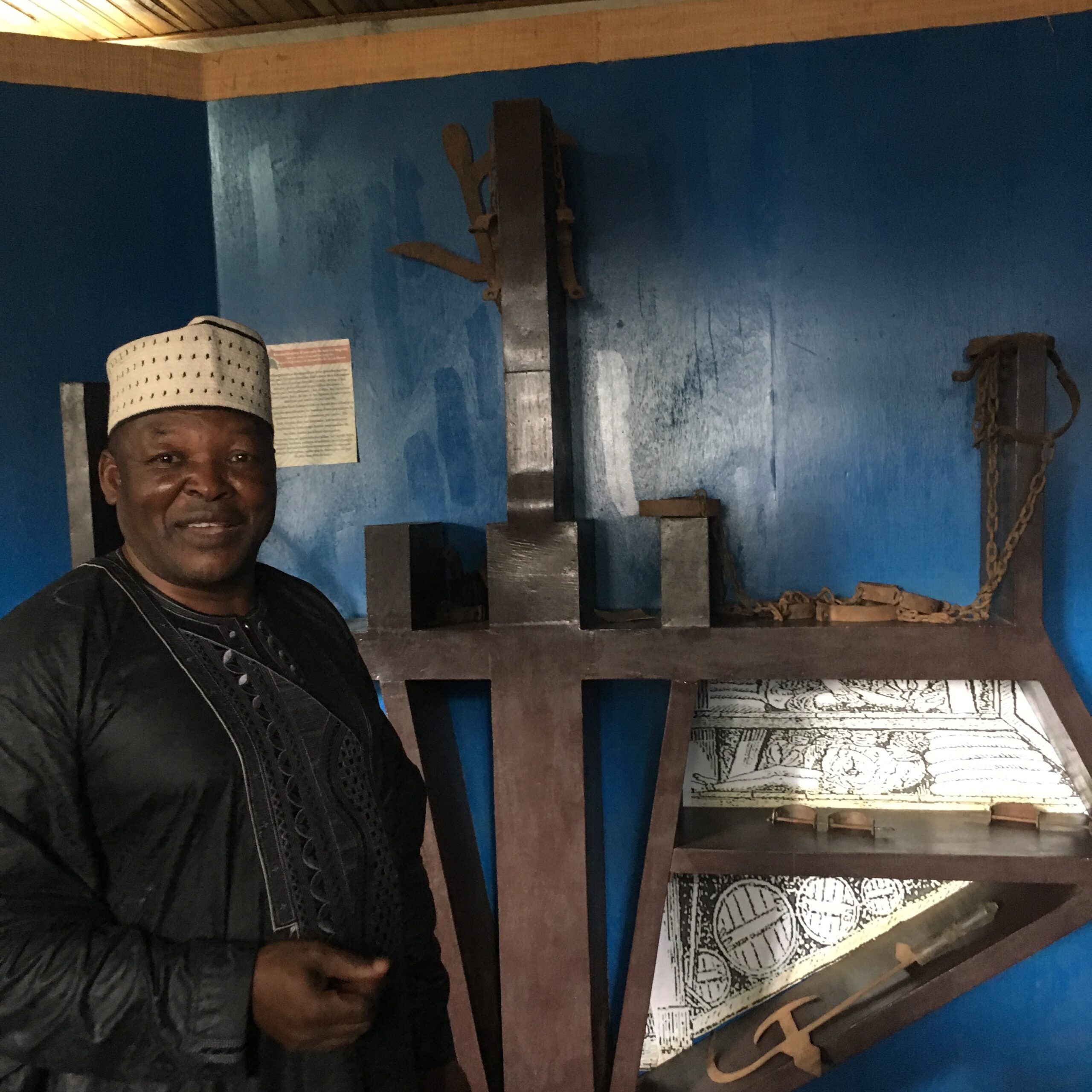 6. Sa majesté Jean Marie Tanefo, chef de village Bamendjida présente le Musée du village et notamment la section dédiée à l’esclavage